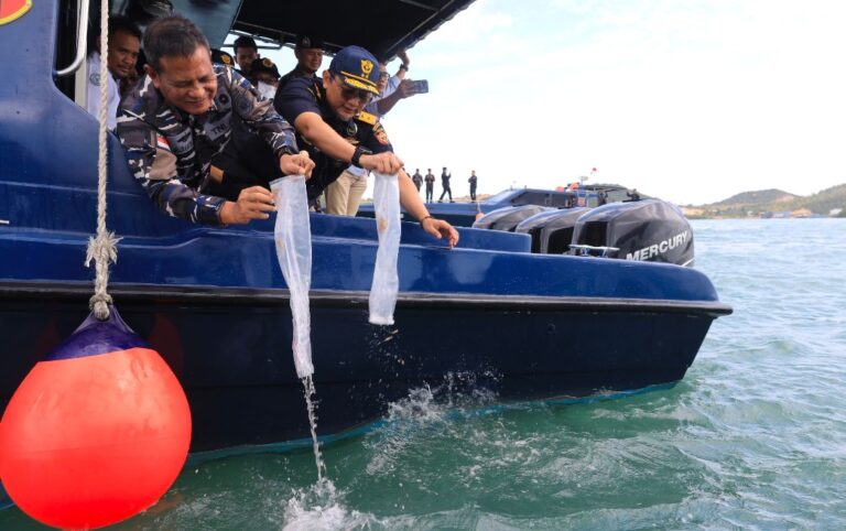 Lestarikan Ekosistem Laut, TNI AL Lepas Benih Bening Lobster di Batam