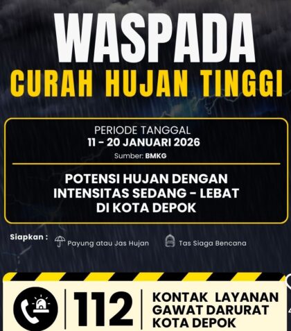 Nasional | • 24 Januari 2026 • Prediksi Cuaca BMKG, Depok Hujan Lebat dan Angin Kencang Mengintai! RUZKA INDONESIA — Cuaca ekstrem. Beberapa hari terakhir, Kota Depok terus diguyur hujan dengan intensitas...