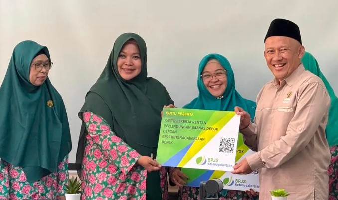 RUZKA INDONESIA — Melalui BPJS Ketenagakerjaan Kota Depok, Badan Amil Zakat Nasional (BAZNAS) Kota Depok memberikan jaminan sosial ketenagakerjaan kepada para pengurus majelis taklim.