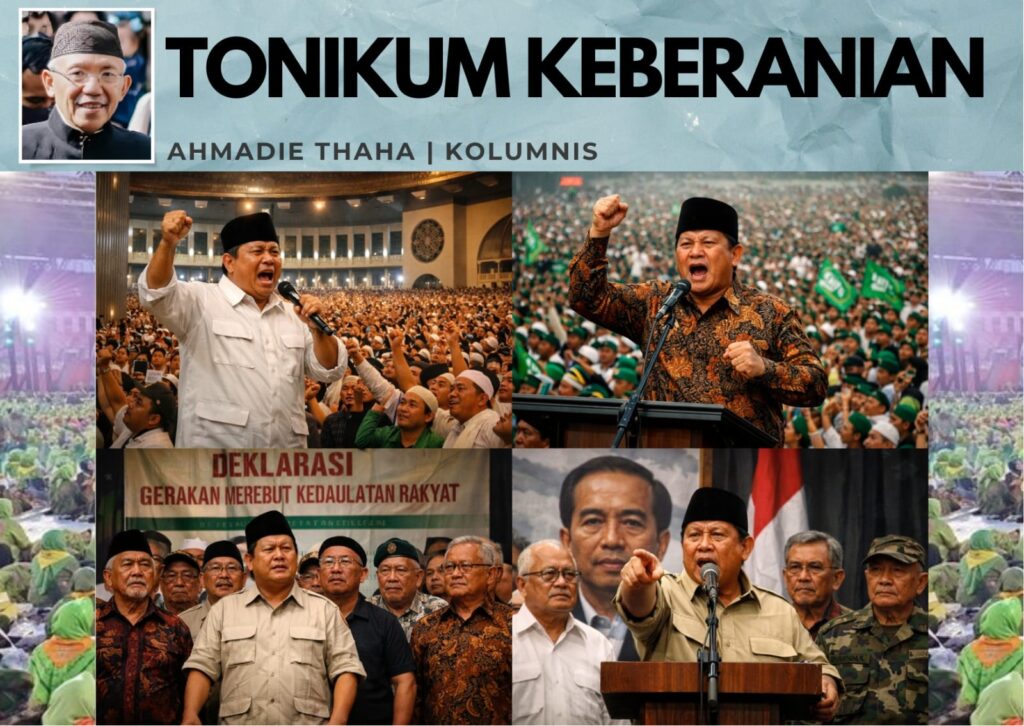 Prabowo bahkan memberi keterangan tambahan yang terasa seperti catatan kaki dalam skripsi keberanian: ia mengaku semakin berani setelah melihat dukungan massa umat Islam.