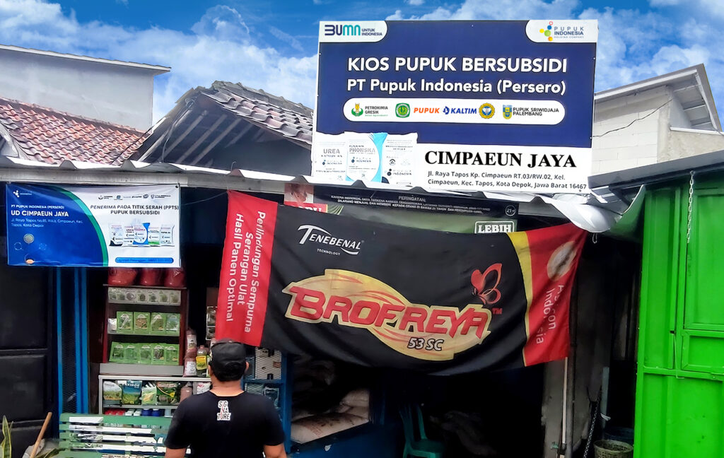 Kios pupuk bersubsidi PT Pupuk Indonesia (Persero) di Kelurahan Cimpaeun, Kecamatan Tapos, Kota Depok, menjadi titik akhir distribusi pupuk sebelum sampai ke tangan petani dan diuji langsung di sawah. (Foto: Djoni Satria/Ruzka Indonesia)