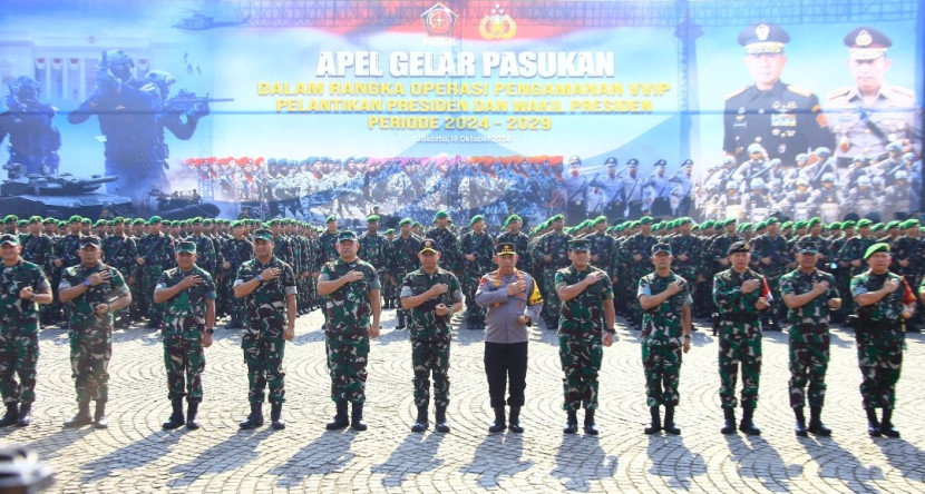 Aparat Polri dan TNI gelar pasukan pengamanan pelantikan Presiden dan Wakil Presiden di Monas, Jakarta Jumat (18/10/2024). (Foto: Dok Ruzka Indonesia)
