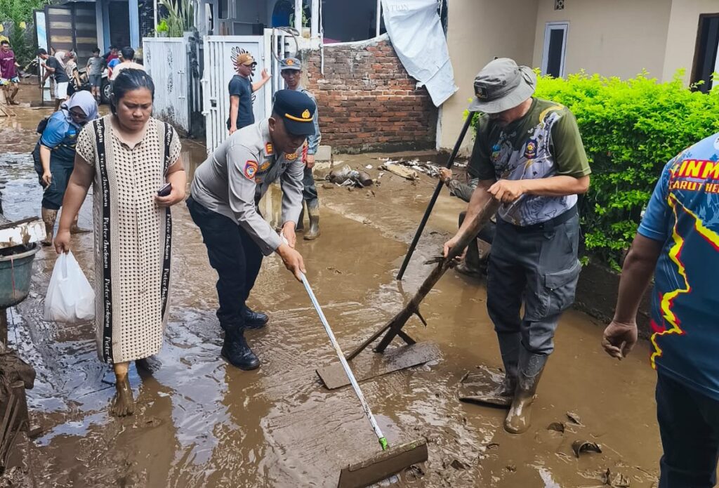 Seperti pada peristiwa banjir akibat hujan lebat menimpa Kampung Campaka, Kelurahan Lebakjaya, Kecamatan Karangpawitan, Kabupaten Garut, Jumat (17/04/2026), personel Polsek Karangpawitan sigap melakukan langkah penanganan.