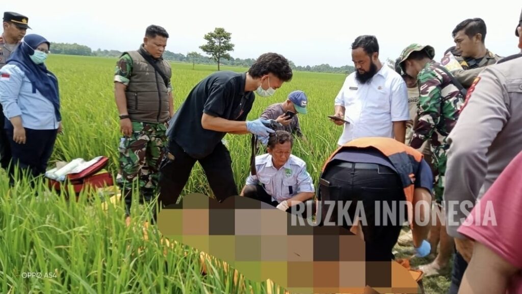 RUZKA INDONESIA — Warga Desa Balida, Kecamatan Dawuan, Kabupaten Majalengka, Jawa Barat (Jabar), digemparkan dengan penemuan sesosok mayat pria tanpa identitas di area persawahan, Selasa (30/12/2025) siang.
