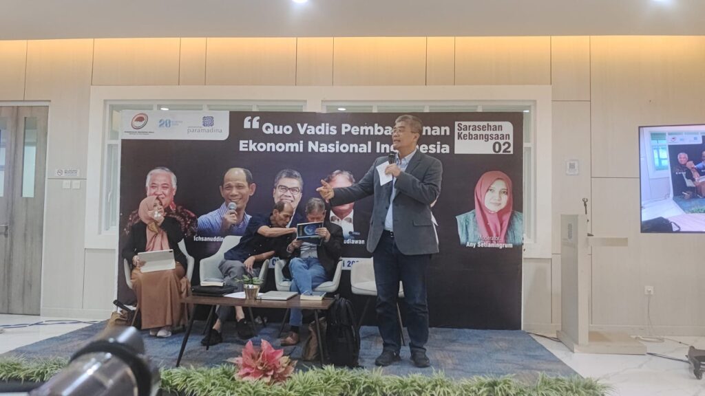 Sarasehan seri kedua kali ini bertema “Asta Cita ke-2: Quo Vadis Pembangunan Ekonomi Nasional Indonesia”, menghadirkan Ichsanuddin Noorsy, Anthony Budiawan, dan Wijayanto Samirin sebagai pembicara, dengan moderator Any Setianingrum.