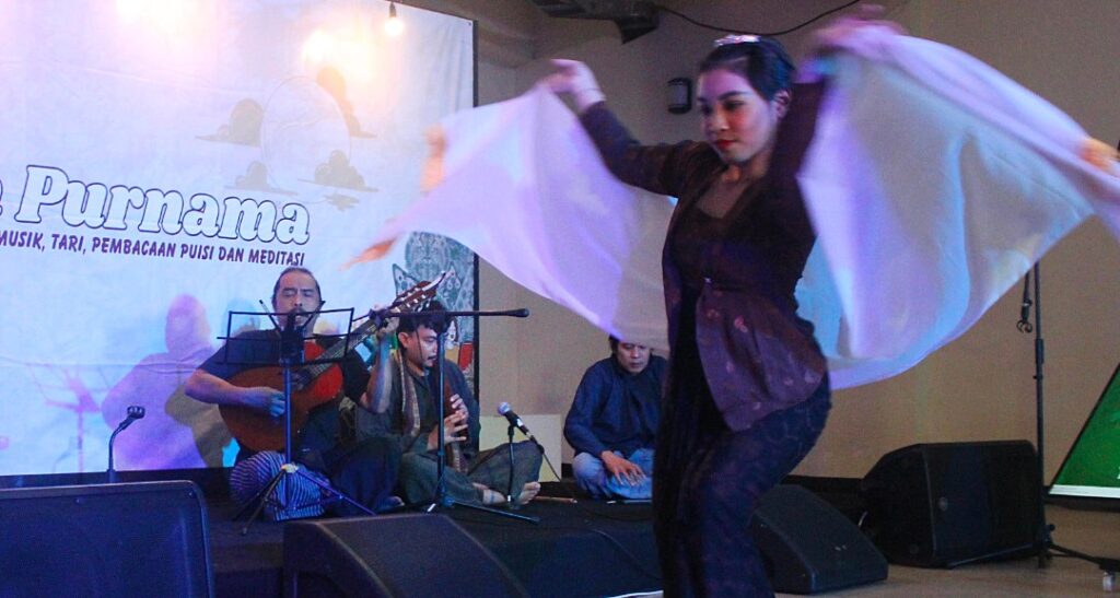 RUZKA INDONESIA — Kelompok musik etnik kontemporer Swara SeadaNya mementaskan sebuah repertoar untuk menunjukkan rasa simpati terhadap korban bencana alam di Sumatera dalam acara Majelis Nyala Purnama #9 yang di gelar Direktorat Kebudayaan Universitas Indonesia (UI) yang bekerja sama dengan Komoenitas Makara, dan Urban Spiritual Indonesia, di Makara Art Center UI, Selasa (06/01/2026) malam.