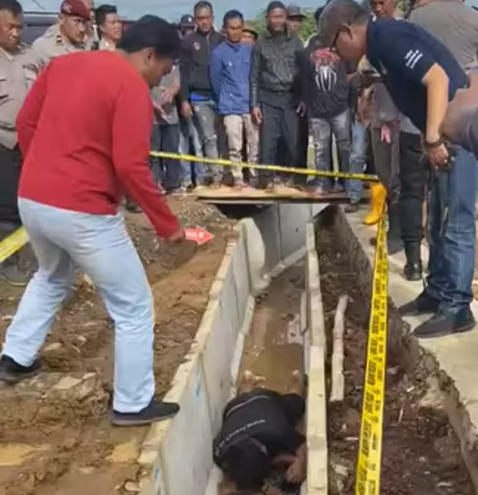 Warga yang melihat seorang pria tergeletak di selokan langsung melaporkan temuan tersebut kepada aparat desa dan diteruskan ke pihak kepolisian.