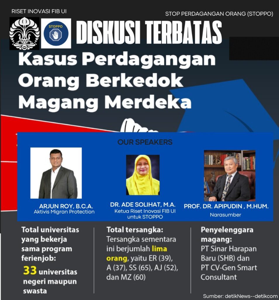 Penggagas inisiatif STOPPO dari Universitas Indonesia, Dr. Ade Solihat, S.S., M.A. menegaskan bahwa kasus ini menunjukkan perubahan wajah perdagangan orang di era mobilitas global.