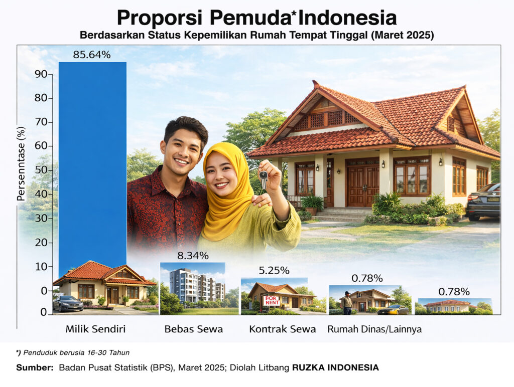 Data Badan Pusat Statistik (BPS) Maret 2025 menunjukkan 85,64 persen pemuda usia 16–30 tahun tercatat tinggal di rumah milik sendiri. Sekilas angka itu terlihat optimistis. Namun realitas di baliknya lebih kompleks.